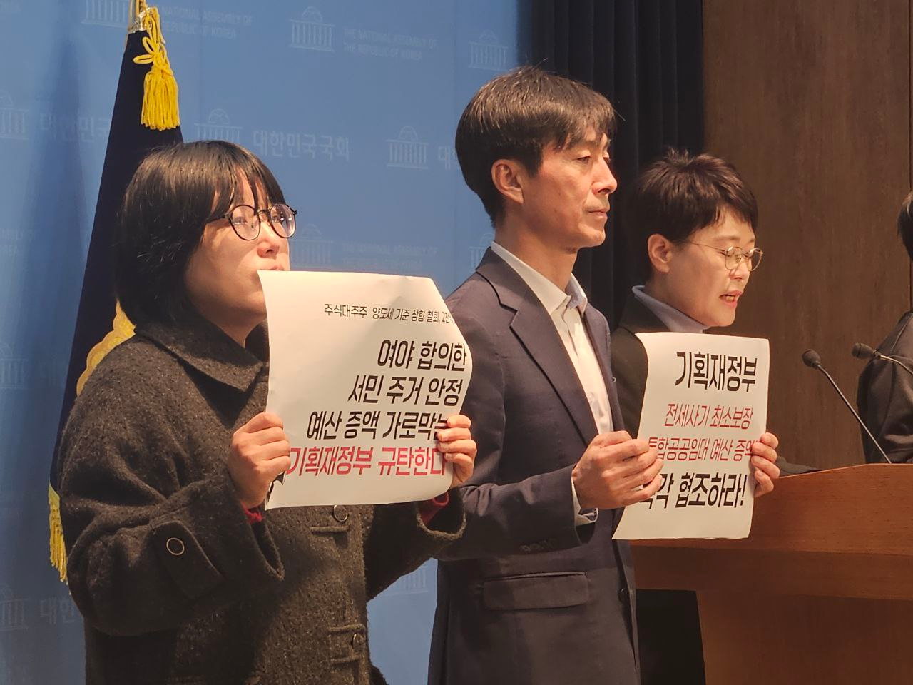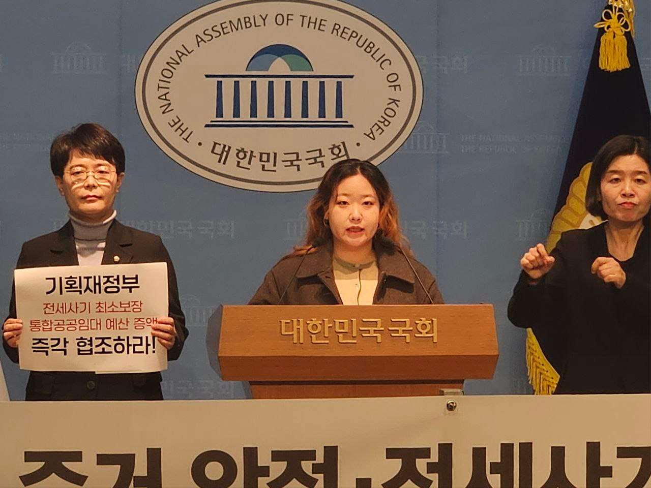 전세사기 피해자 최소보장 예산과 세입자의 주거 안정을 위한 통합공공임대주택 예산에 반대하는 기획재정부를 규탄하며 정부의 역할과 책임을 다할 것을 촉구합니다.