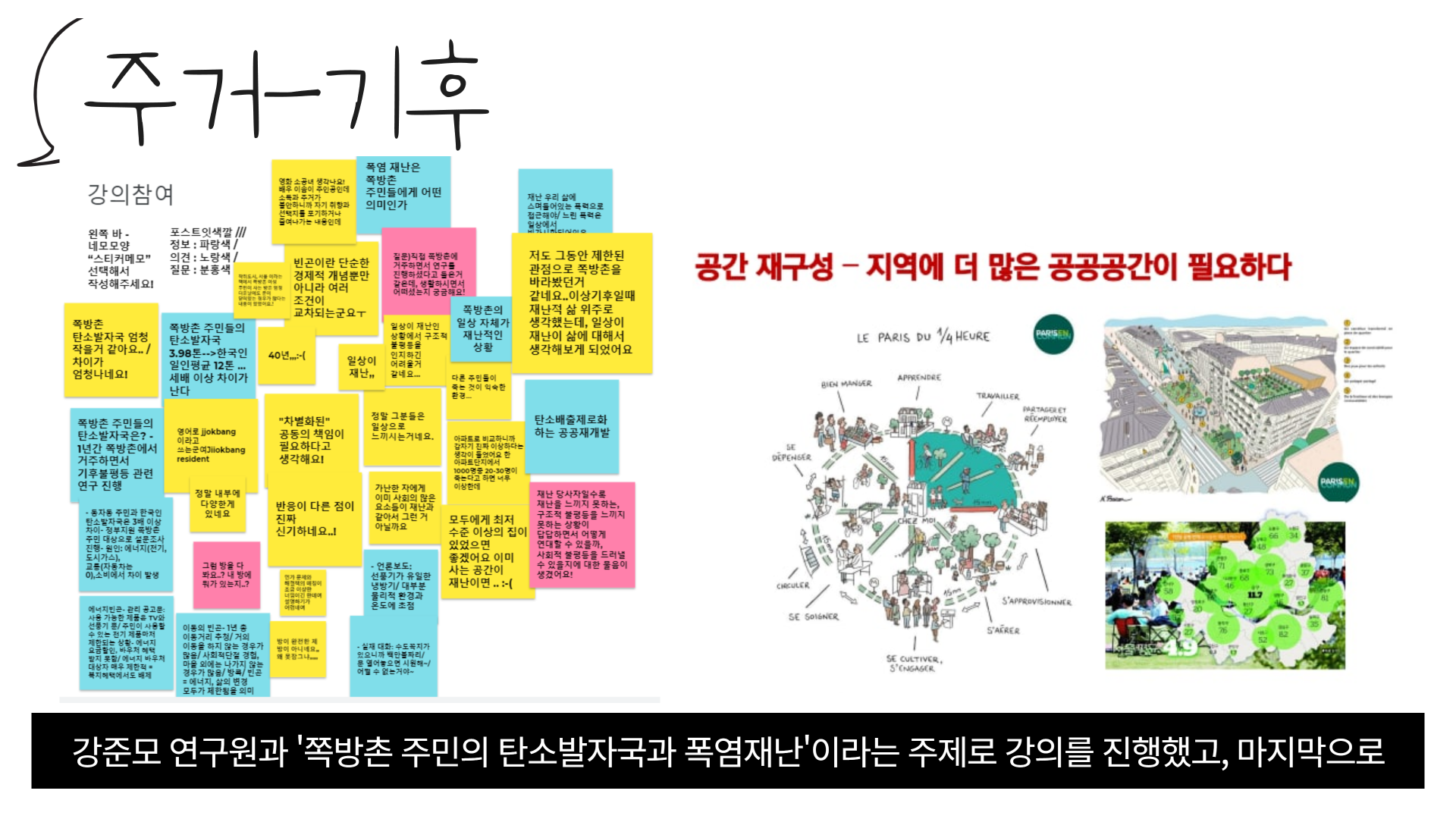 강준모 연구원과 '쪽방촌 주민의 탄소발자국와 폭염재난'이라는 주제로 강의를 진행했고,