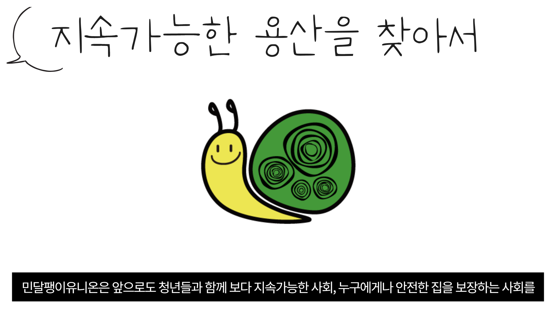 민달팽이유니온은 앞으로도 청년들과 함께 보다 지속가능한 사회, 누구에게나 안전한 집을 보장하는 사회를 같이 고민해나가겠습니다.