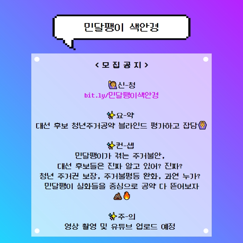 👉 신청하기 : https://bit.ly/민달팽이색안경