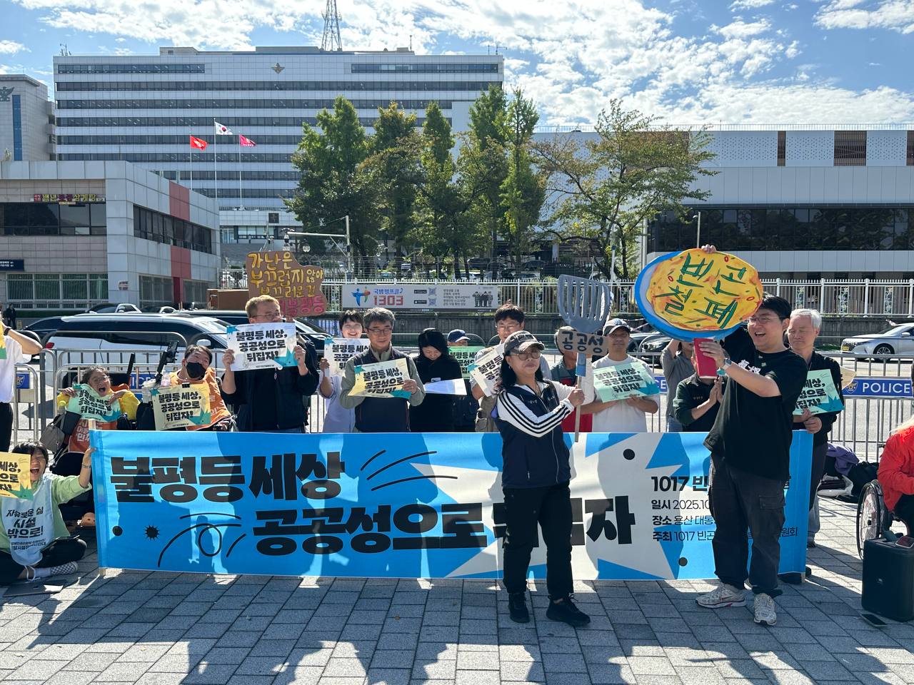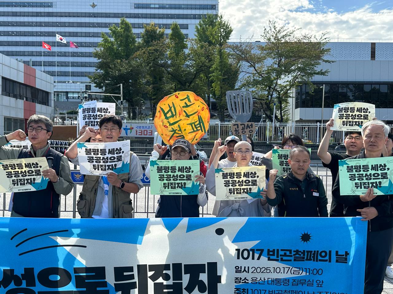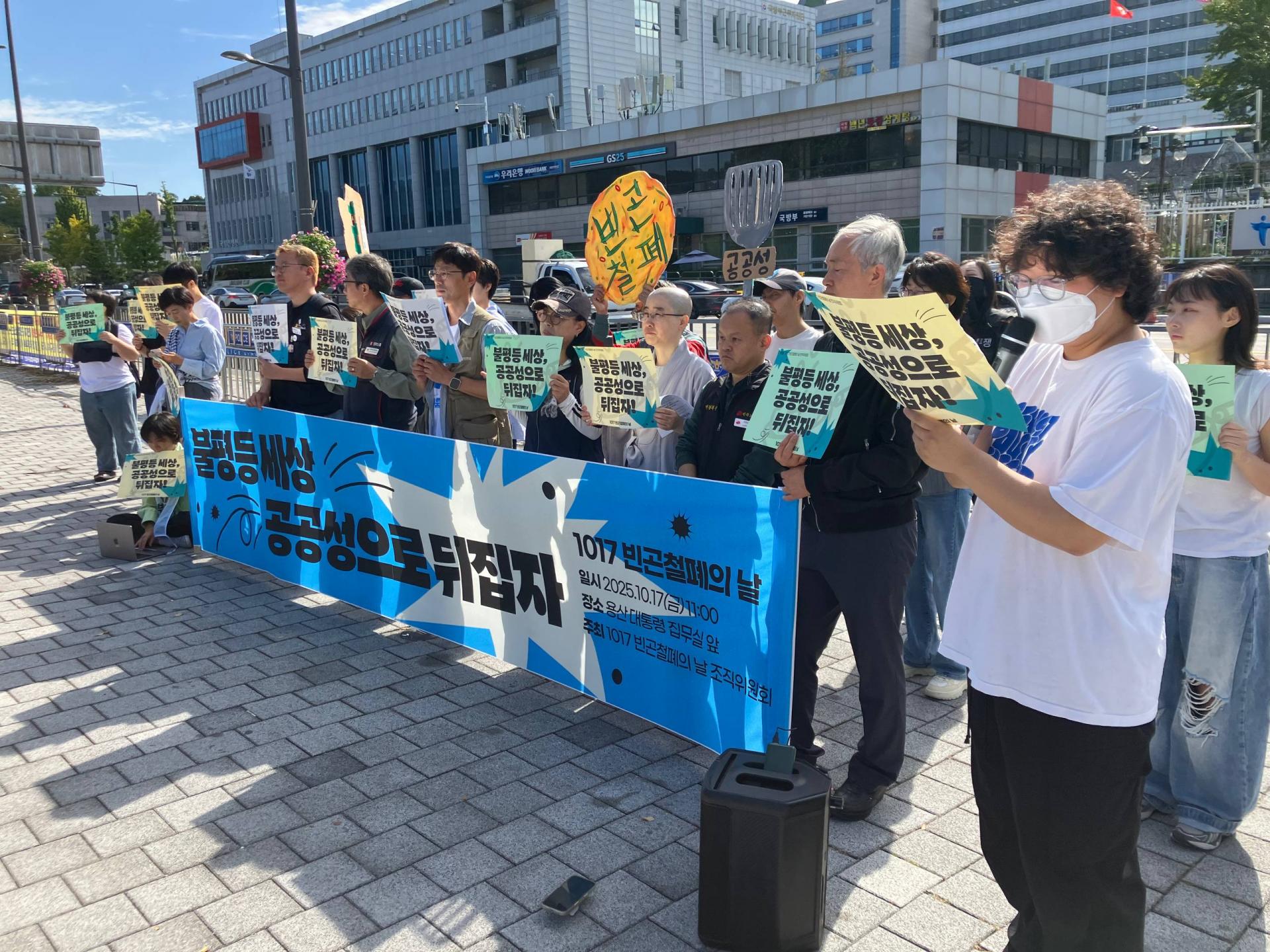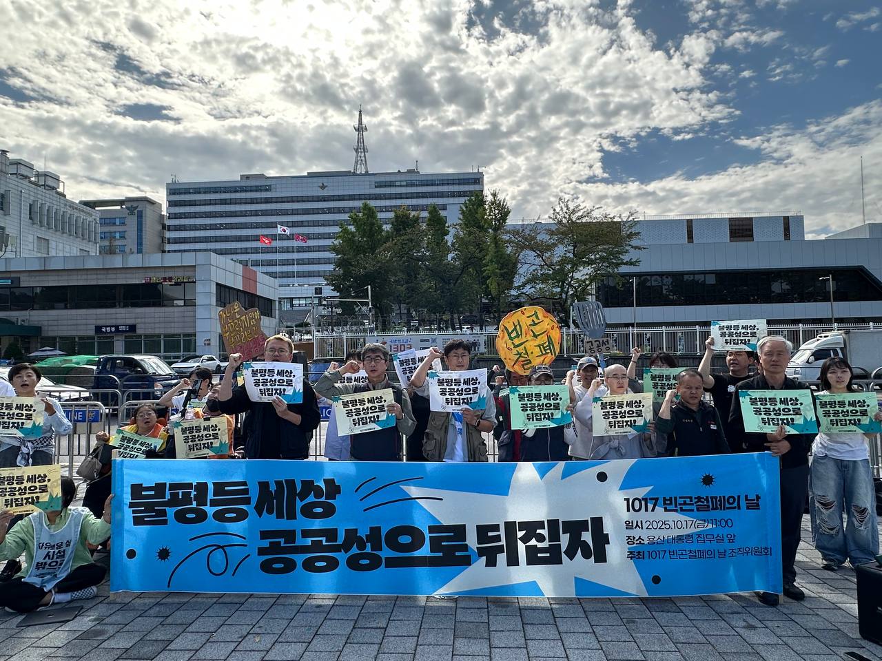 오늘(10/17) 오전 11시, 용산 대통령 집무실 앞에서 2025년 1017빈곤철폐의 날 조직위원회는 “불평등 세상 공공성으로 뒤집자!”라는 슬로건 아래 기자회견을 진행했습니다.