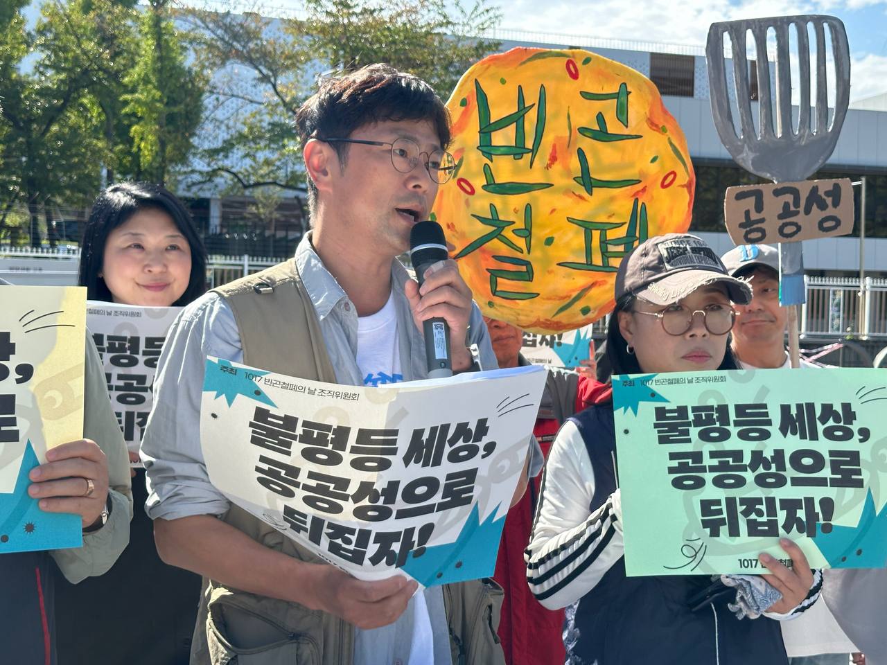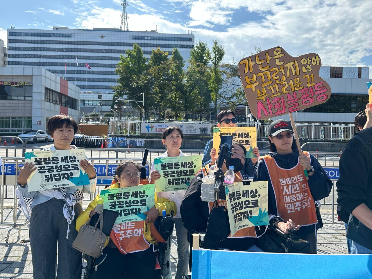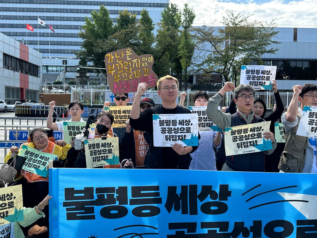 오늘(10/17) 오전 11시, 용산 대통령 집무실 앞에서 2025년 1017빈곤철폐의 날 조직위원회는 “불평등 세상 공공성으로 뒤집자!”라는 슬로건 아래 기자회견을 진행했습니다.