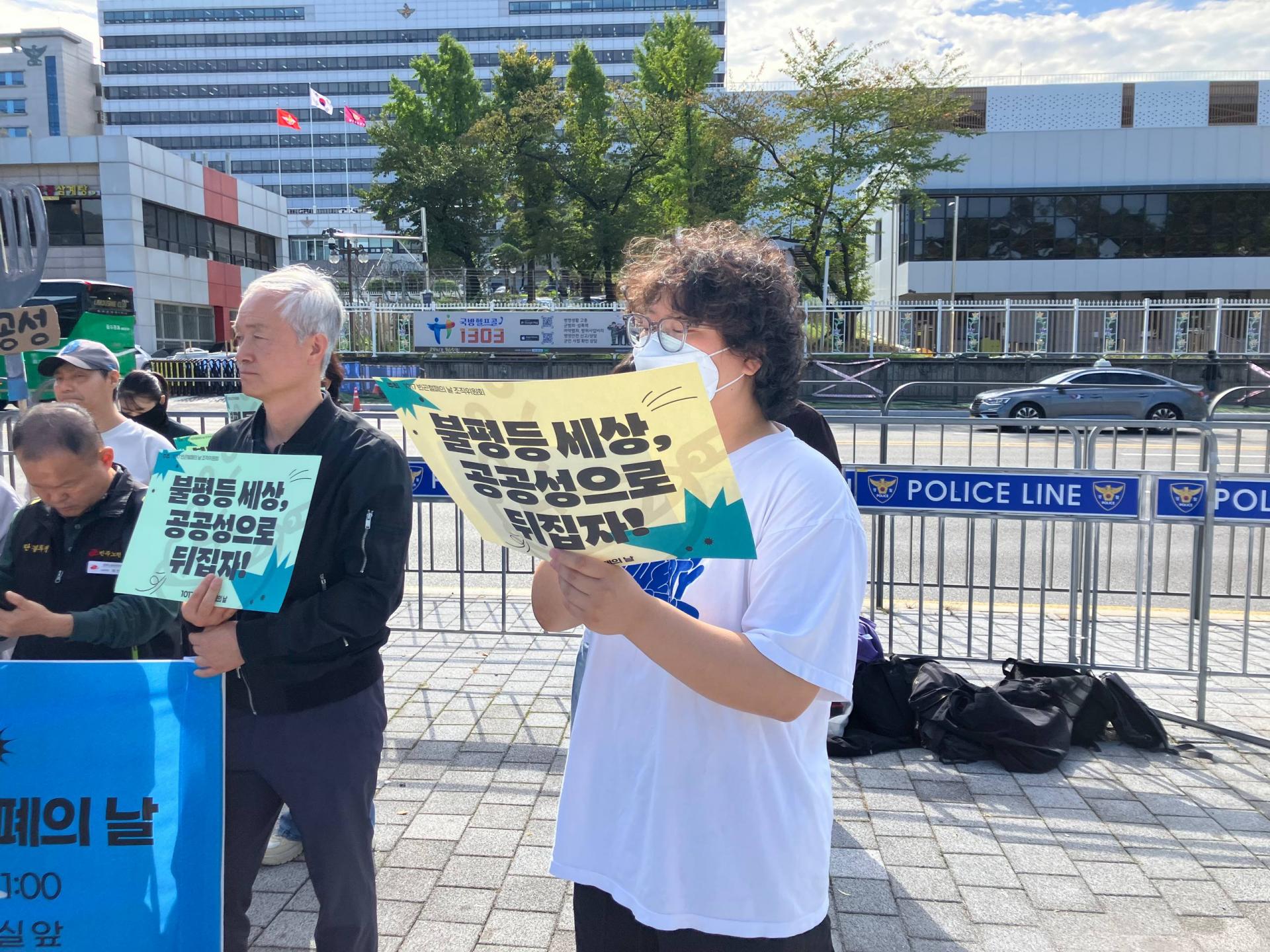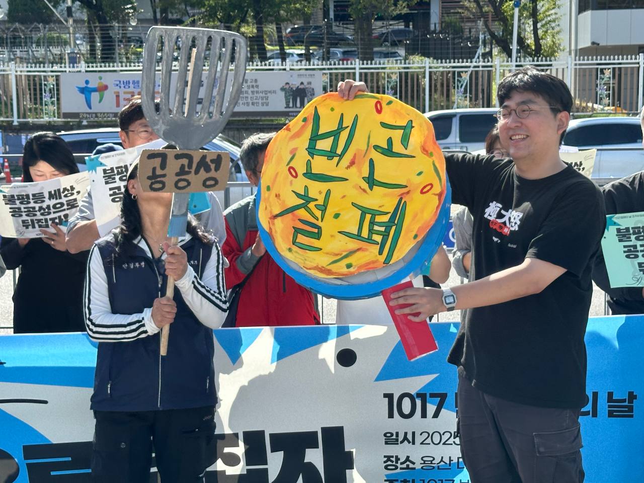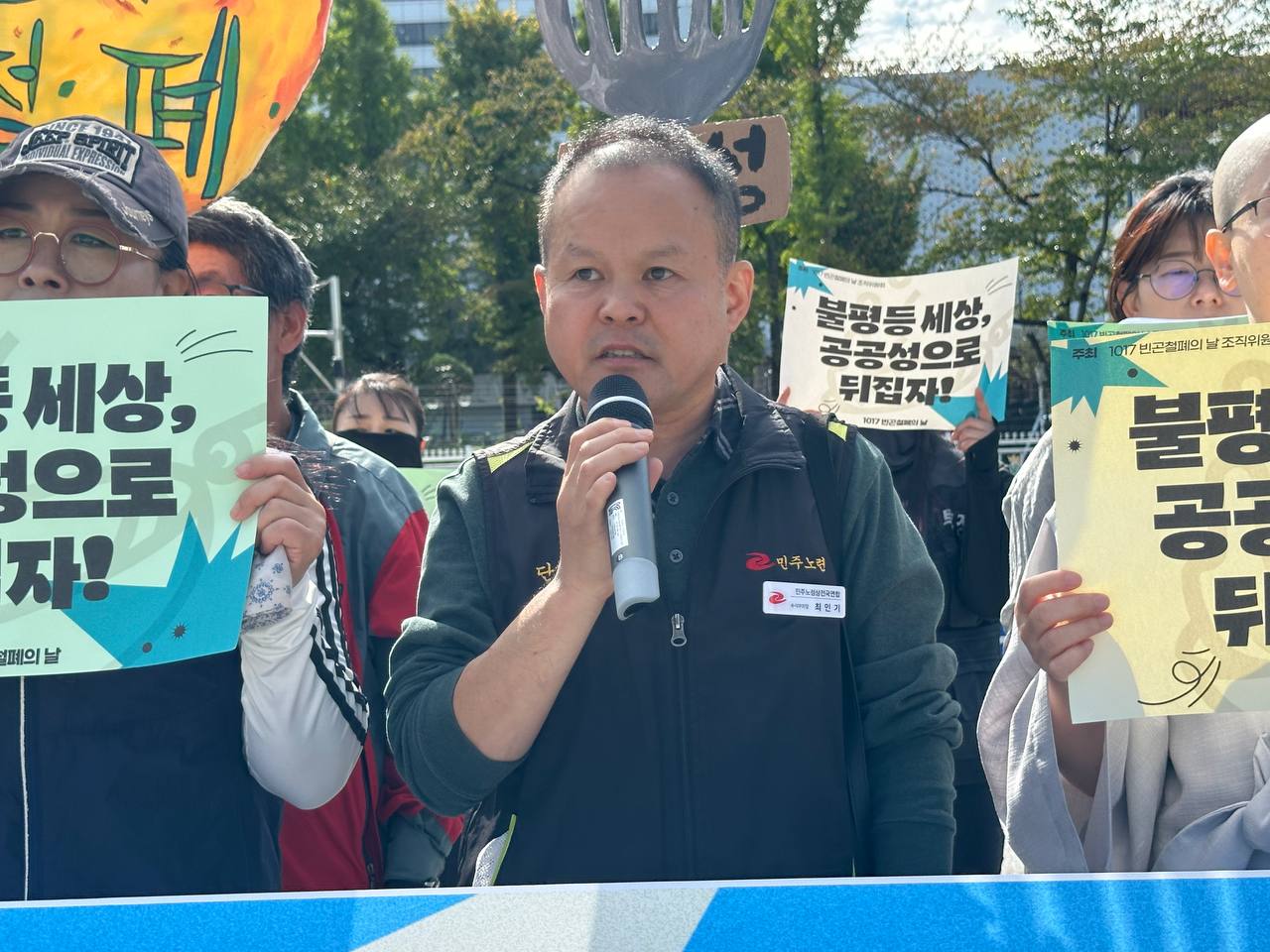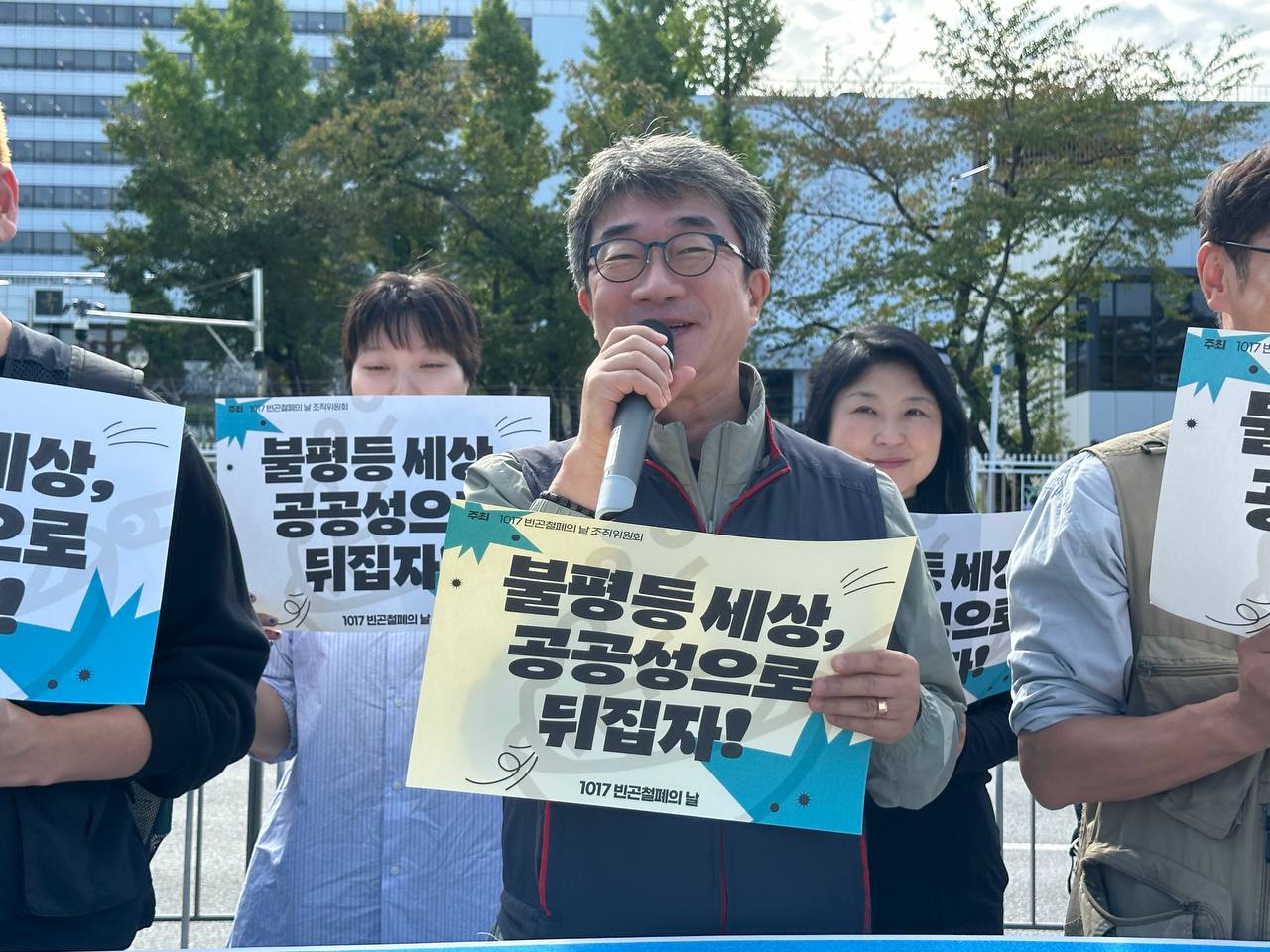 오늘(10/17) 오전 11시, 용산 대통령 집무실 앞에서 2025년 1017빈곤철폐의 날 조직위원회는 “불평등 세상 공공성으로 뒤집자!”라는 슬로건 아래 기자회견을 진행했습니다.