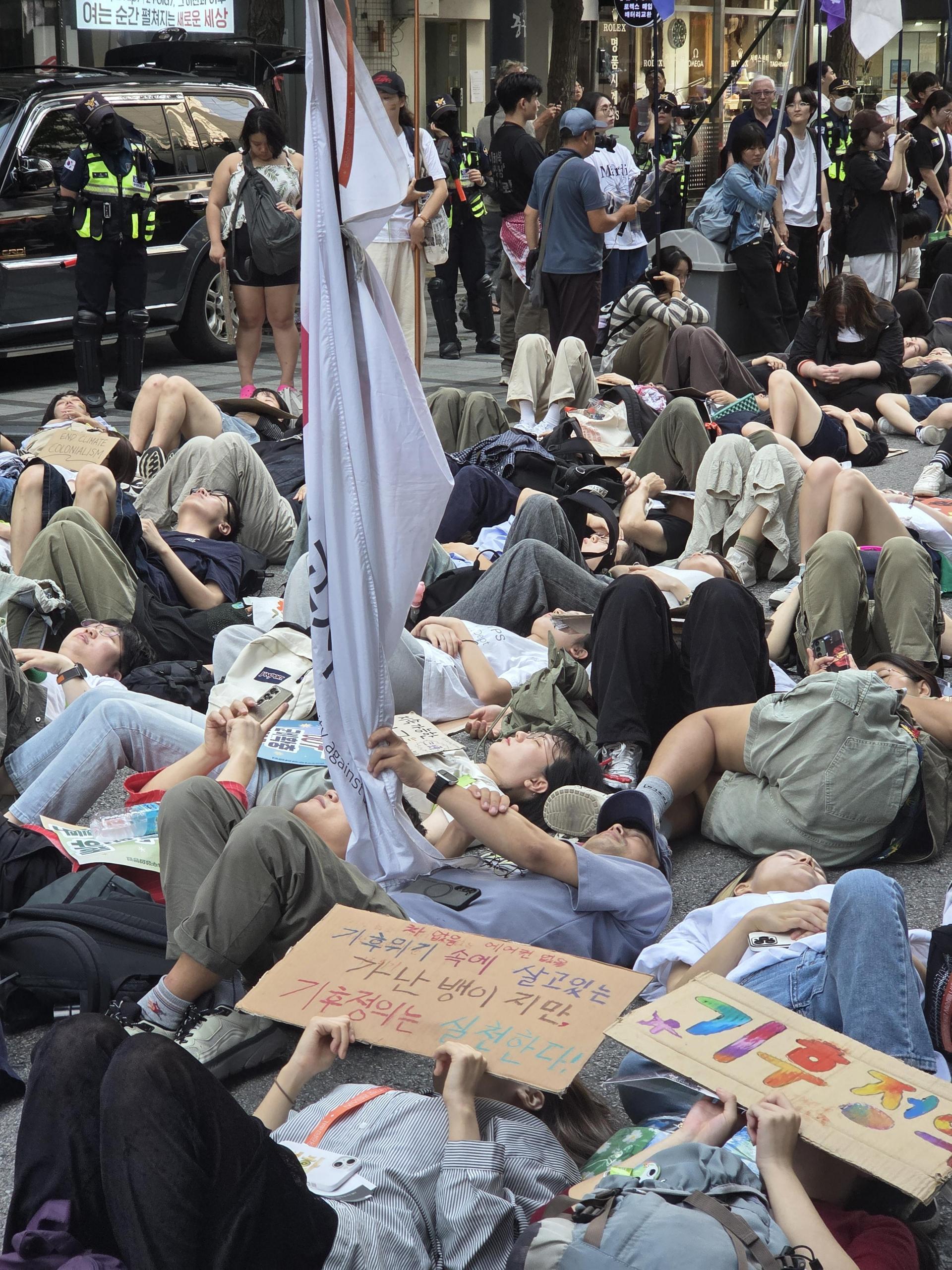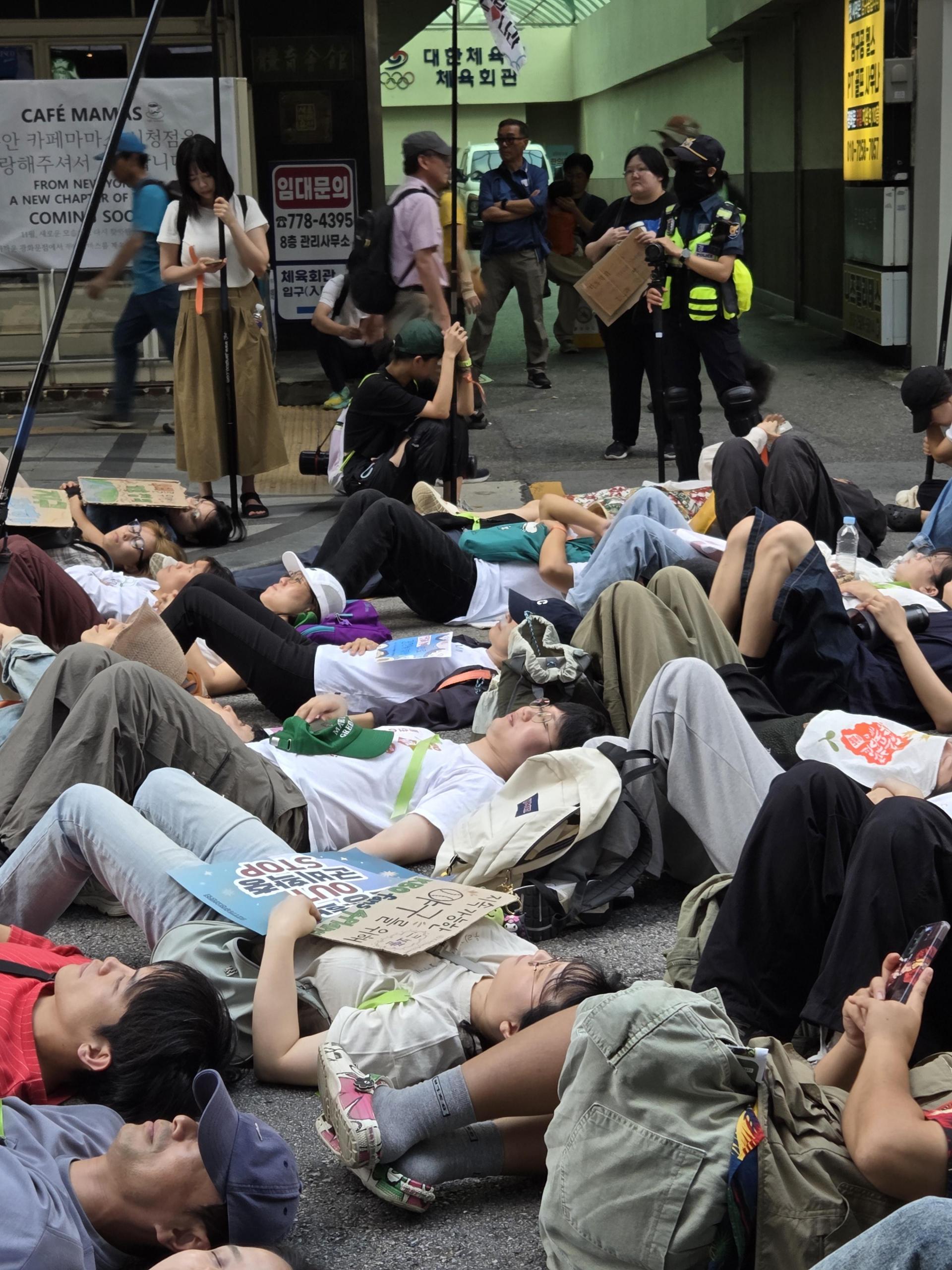 🐌행진 도중에는 심각한 기후위기 속에서 다양한 생명체가 죽음으로 내몰리고 있음을 알리는 다이인 퍼포먼스를 진행하였습니다.