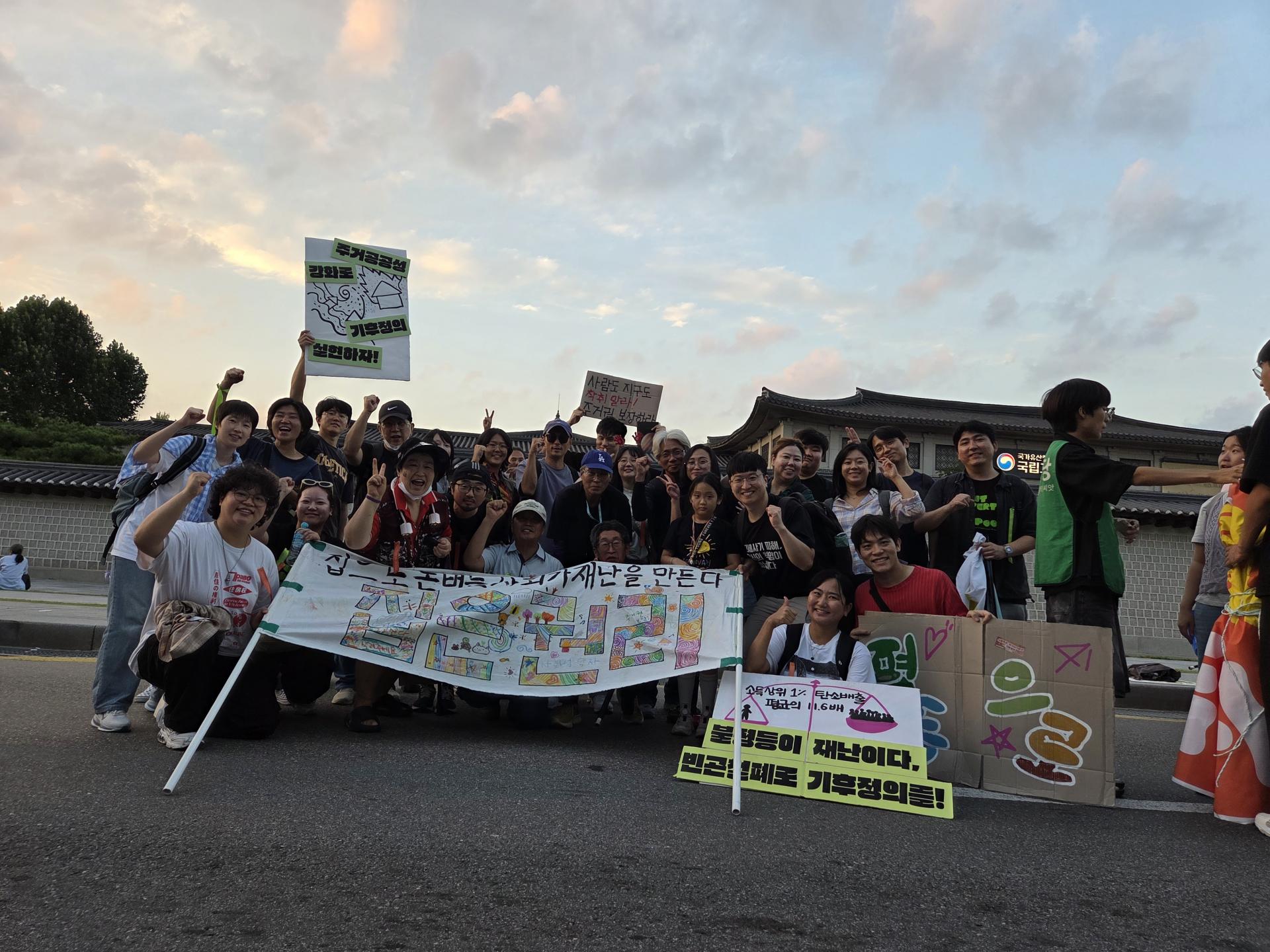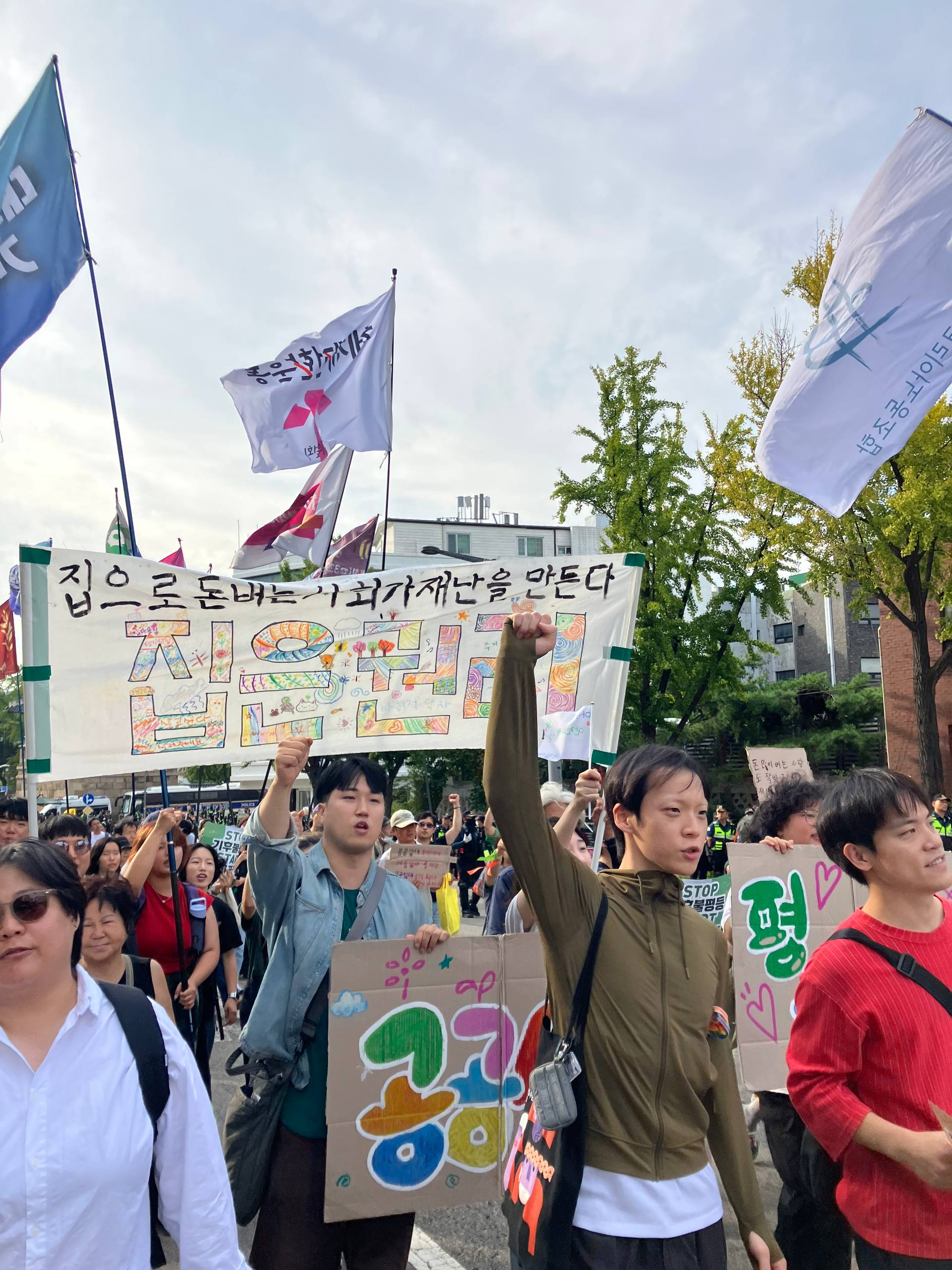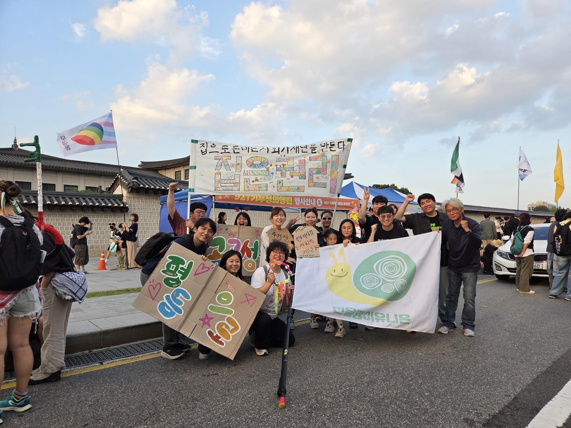 9월 27일 민달팽이유니온은 '927기후정의행진S2주거권행진단'을 꾸려 927기후정의행진에 참여했습니다. 본집회에 참여하기 전 아랫마을에 모여 927기후정의행진 요구안을 살펴보고, 주거권행진단이 기후정의를 외치는 이유를 살펴보았습니다.