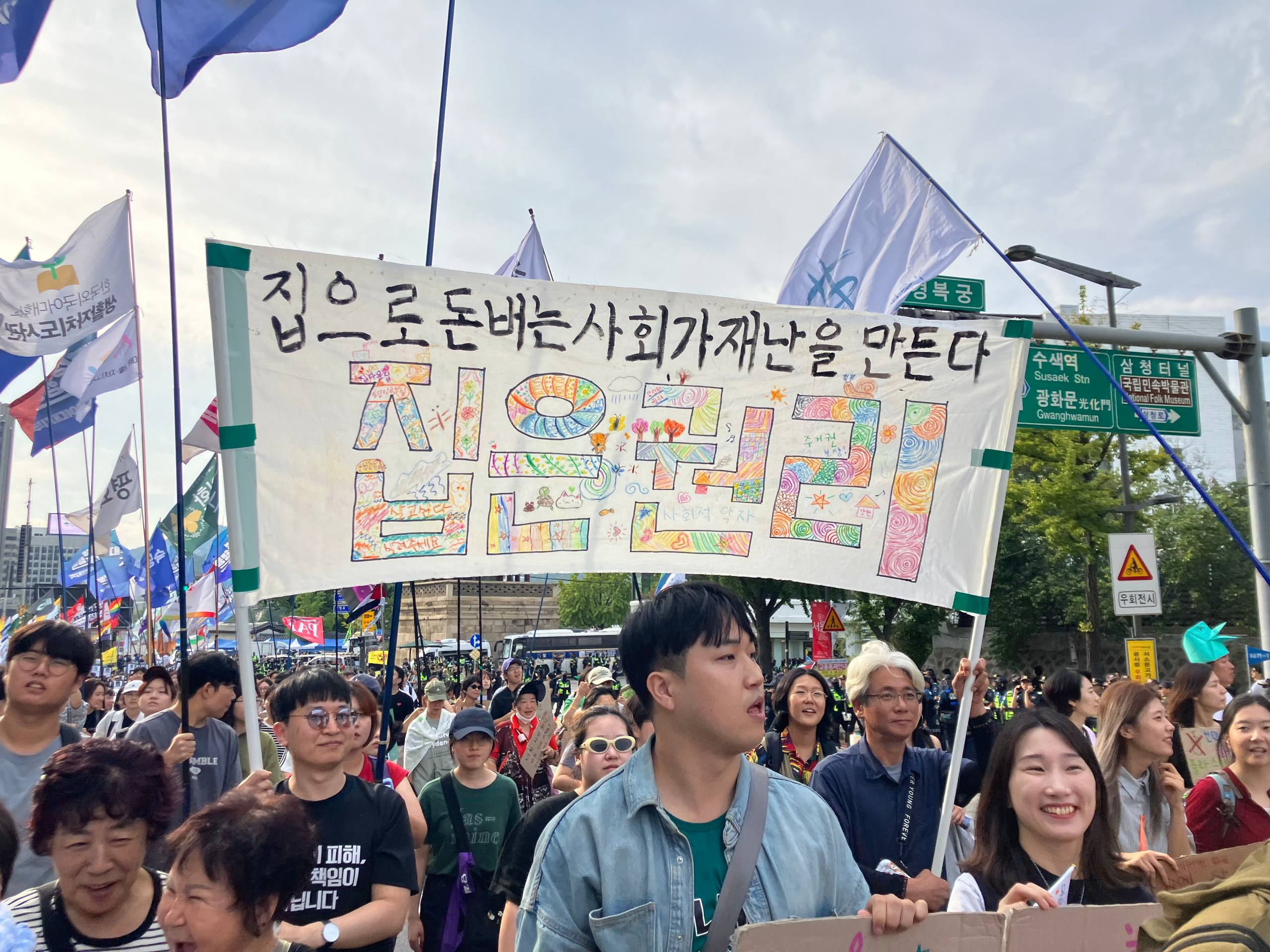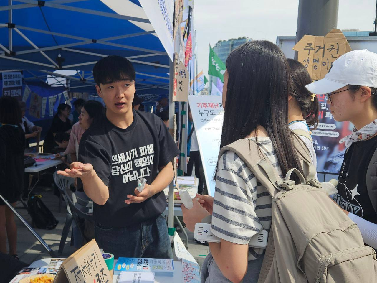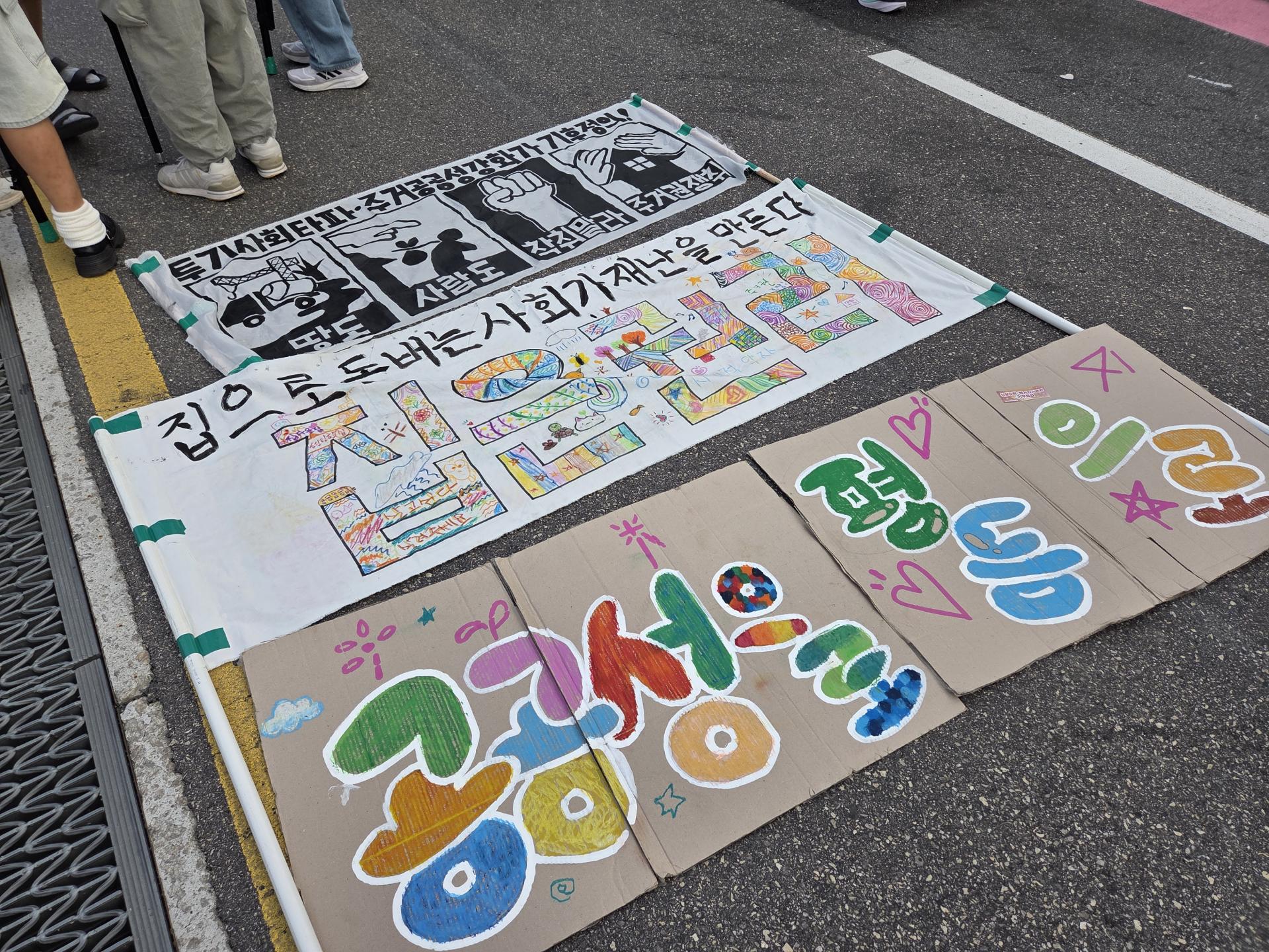9월 27일 민달팽이유니온은 '927기후정의행진S2주거권행진단'을 꾸려 927기후정의행진에 참여했습니다. 본집회에 참여하기 전 아랫마을에 모여 927기후정의행진 요구안을 살펴보고, 주거권행진단이 기후정의를 외치는 이유를 살펴보았습니다.