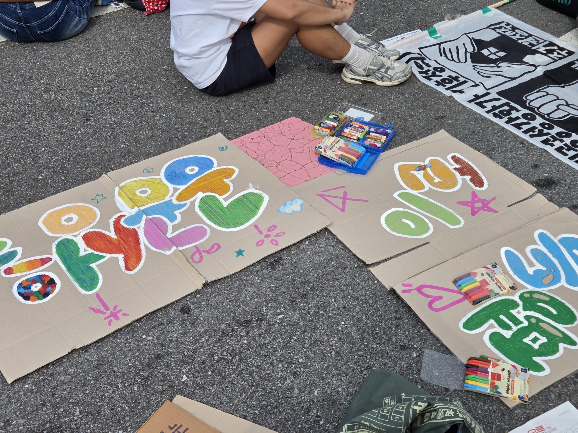 사전모임 이후에는 기후정의행진이 열리는 동십자각으로 이동하여 피켓 만들기를 진행하였습니다.