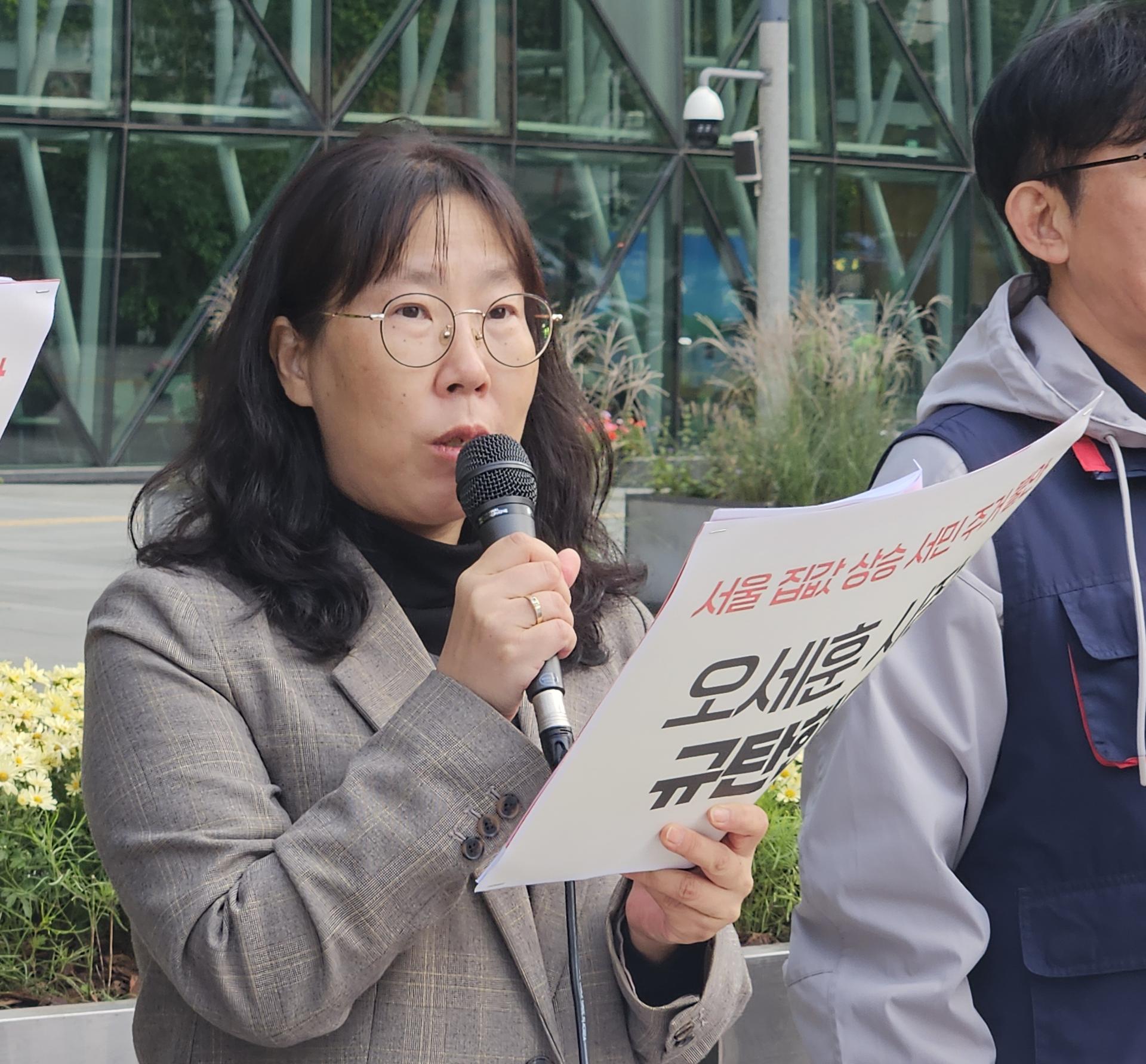 서울 집값 상승, 서민 주거 불안 가중시키는 오세훈 시장 규탄한다.
